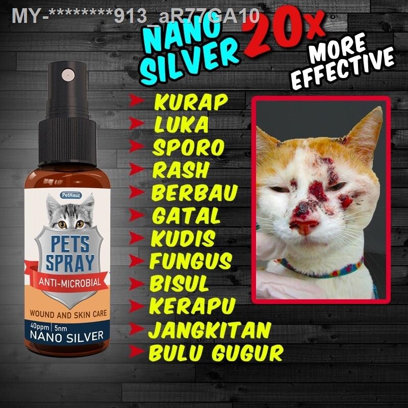 Ubat Kurap Luka Sporo Kucing Pets Spray Nano Silver 40ppm 5nm Kurap Kudis Sporo Gatal Rash Luka Kulit Kulat Fungus Lazada